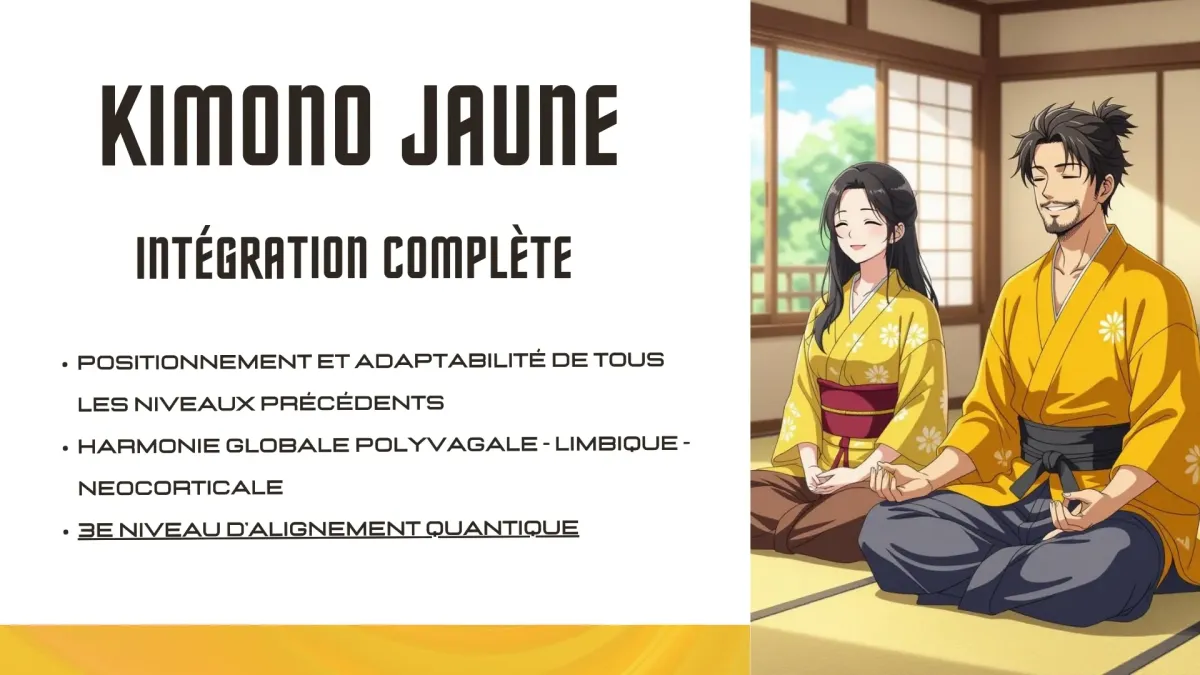 Ensuite, l'intégration globale kimono "Jaune" - pour ceux qui le souhaitent - se fait lors d'un stage en présentiel.